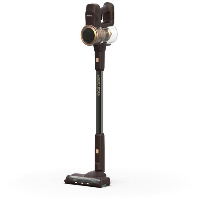 De Princess Draadloze steelstofzuiger 339395 heeft een zuigkracht vermogen van 300W en een stofcontainer met een inhoud van 0,8 liter. De batterijsensor geeft de acculading weer zodat je perfect weet hoe lang je nog kan stofzuigen. Met de ledverlichting zie je stof en vuil goed liggen en door de doorzichtige opvangbak weet je wanneer je de kruimeldief moet legen. Deze steelstofzuiger wordt geleverd met een innovatieve gemotoriseerde anti-klit borstel voor dierenharen en een kierenzuiger waardoor ook de moeilijk bereikbare plaatsen binnen handbereik zijn. De stofcontainer is eenvoudig en hygiënisch te legen.